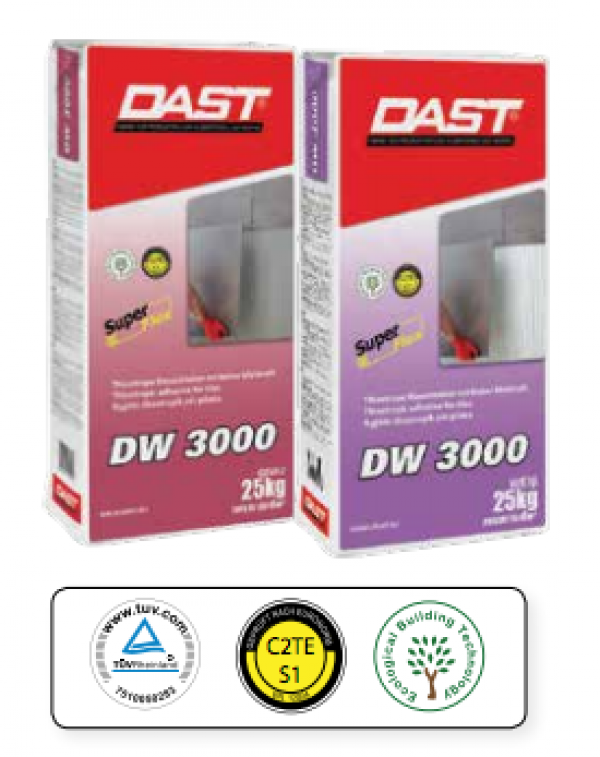 DW 3000 është klasifikuar si C2TE S1 sipas EN 12004, baza C çimento, 2 ngjitës me forcë ngjitëse të lartë, T rezistenca ndaj rrëshkitshmërisë,